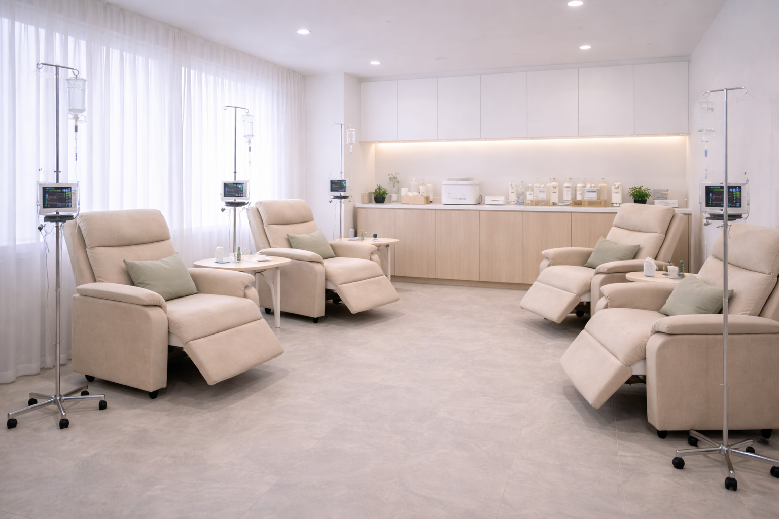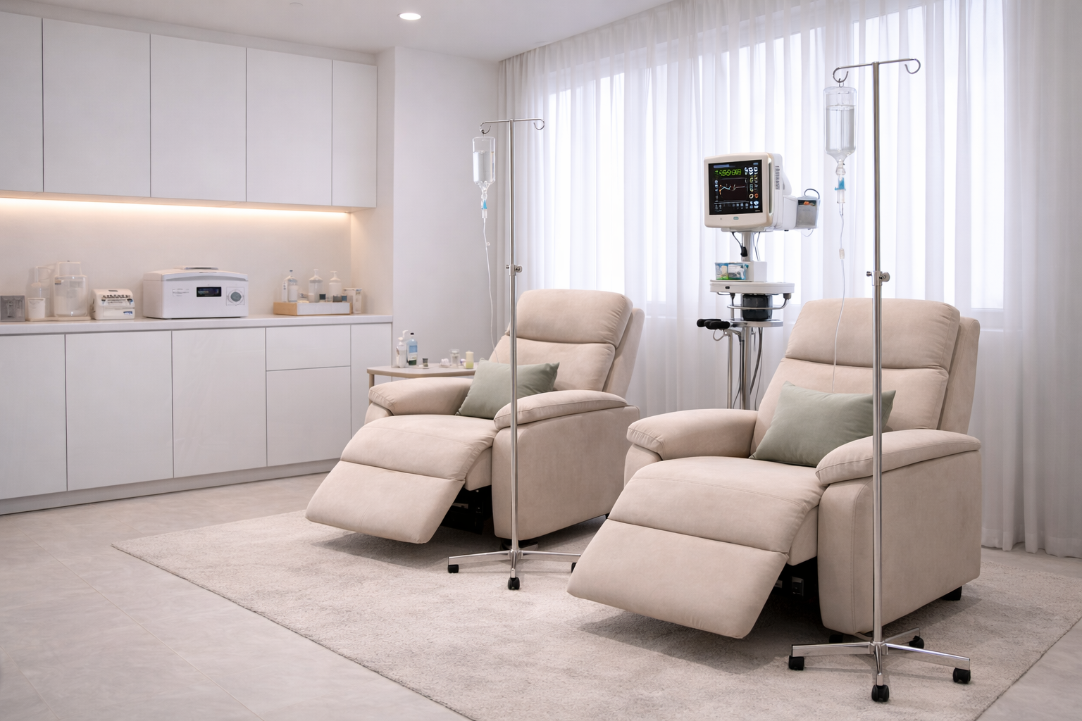 Капельницы Глутатион в клинике «IV-health» проходят в комфортной и безопасной обстановке. Пациент располагается на удобном кресле или кушетке, специалист готовит раствор. Инфузия вводится медленно, под постоянным наблюдением.